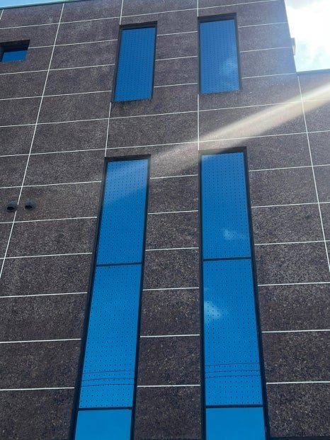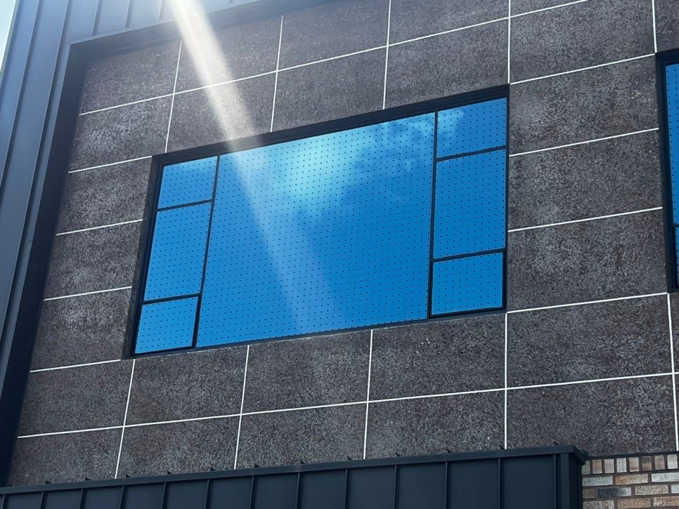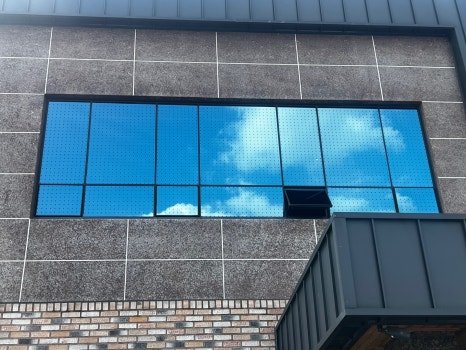 저 검정 사각 도트 모양이 유리창 새 충돌을 저감 시커 주는 패턴입니다.