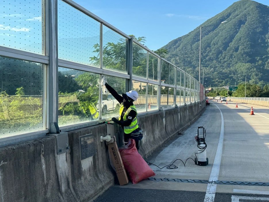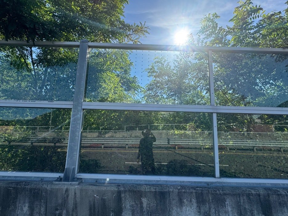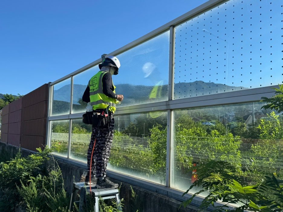✅ 방음벽 표면 청소 및 준비 ✅ 필름 위치 마킹 ✅ 기포 제거하며 정밀 부착 ✅ 모서리 처리 및 마감 ✅ 품질 검수